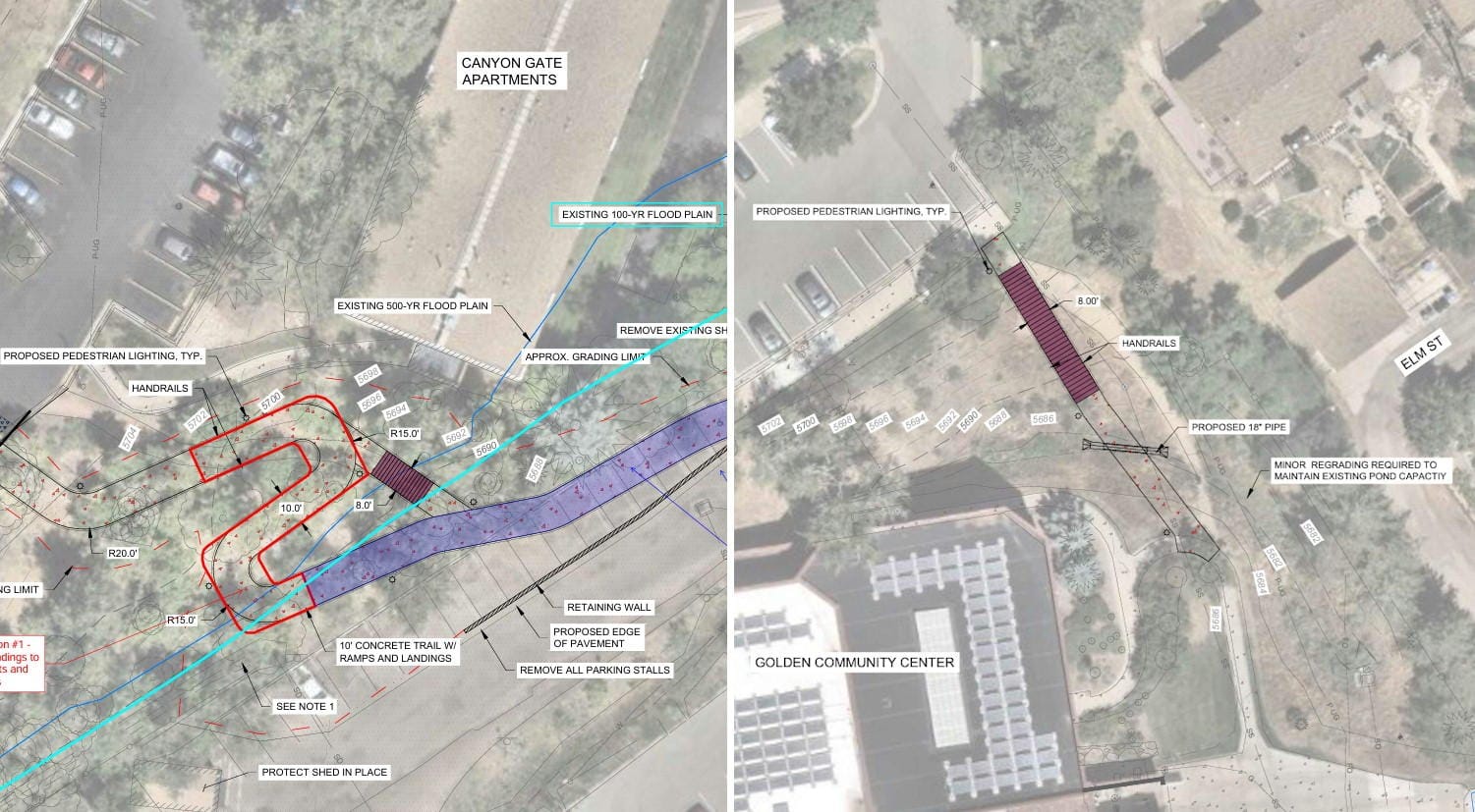The Public Works department will provide GURA with a status report on the two new passages from 8th Street down to 10th Street. The west route will provide a ramp on the west end of the Canyon Gate apartments (map). The east route will provide a stairway on the east end of the Community Center (map).