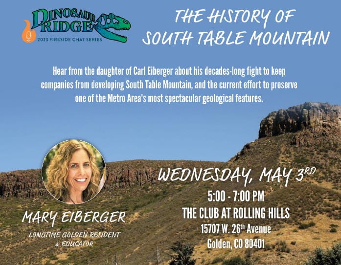 Tonight, the Friends of Dinosaur Ridge are sponsoring a talk by Carl’s daughter, Mary, providing “A Walk-Through Time on South Table Mountain: Paleontology, History, and Preservation Efforts.” Refreshments and finger food will be served and a cash bar will be available. Learn more…. BUY TICKETS