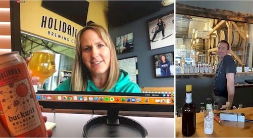 Friday evening, both Holidaily Brewing and State-38 Distilling hosted fun and interesting “parties” on Facebook live. Karen with Holidaily shared a number of facts I didn’t know, such as the origins of the artwork on their cans. Sean at State-38 unveiled their top-secret recipes for some of their most-requested drinks. You can still watch them–just visit their Facebook pages.