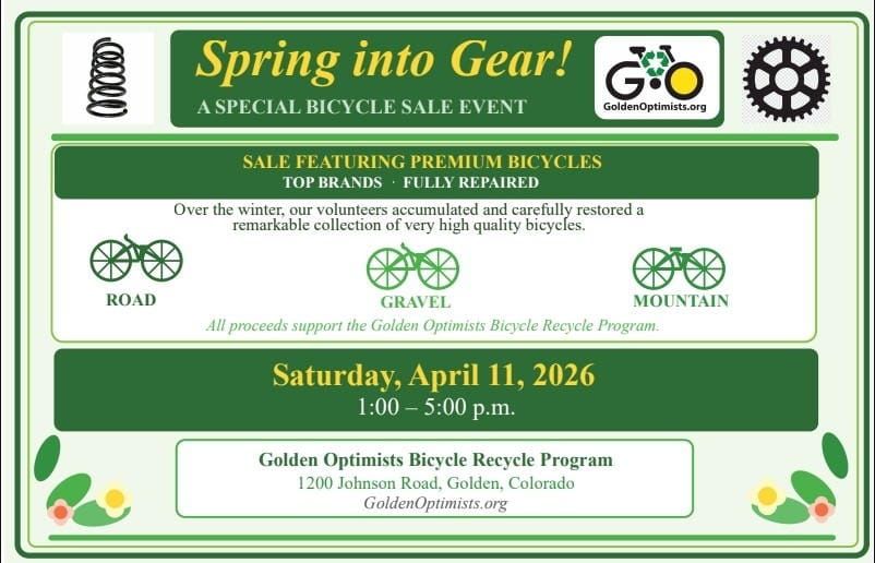 All proceeds support the Golden Optimists Bicycle Recycle Program.