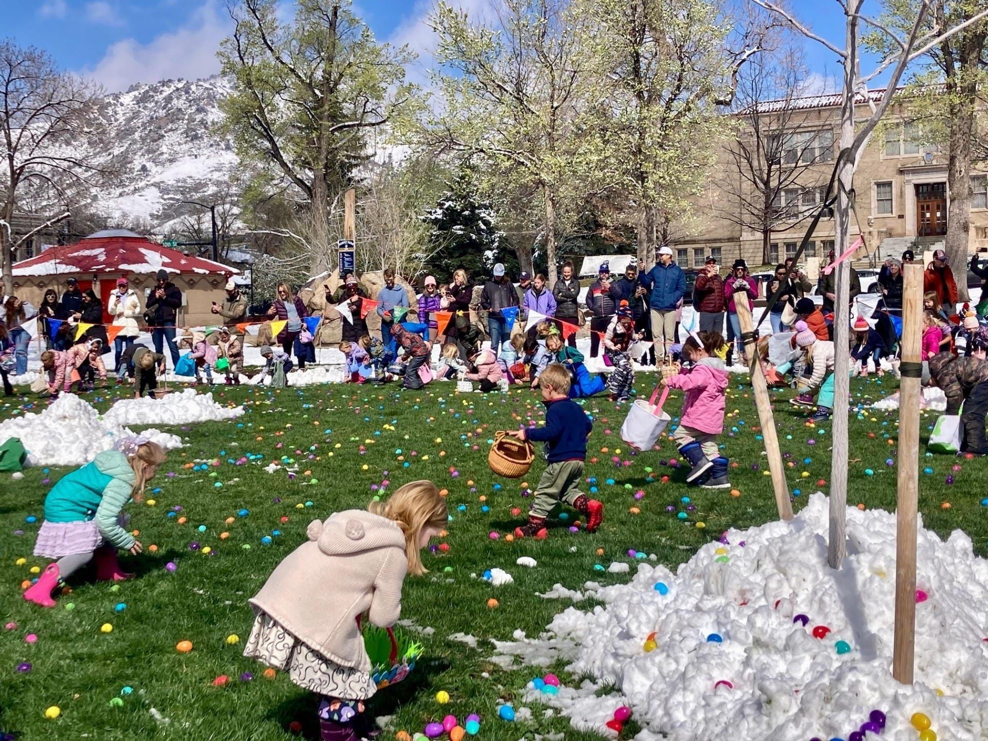 On the morning of the hunt, thousands of plastic eggs are spread throughout Parfet Park with different areas for different age groups. Once the bell sounds, kids clean the park in no time, so don’t be late!