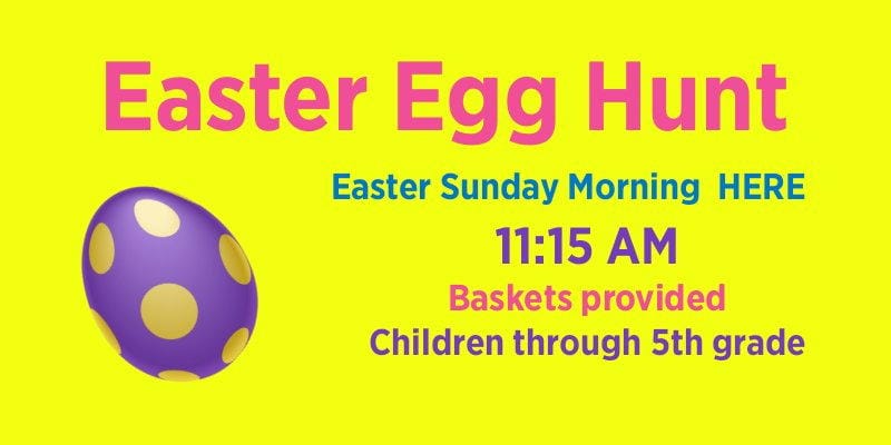 Children 2 years old through 5th grade are invited to participate in an Easter Egg Hung on the lawn of First Unit4ed Methodist Church. It is for the entire community.