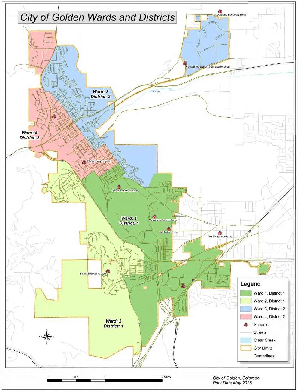 Golden has a City Council election every two years. This year, we're voting for our four Ward representatives. Don Cameron is the only incumbent running for a second term. Two years from now, we'll be voting for a Mayor and for the two District positions.