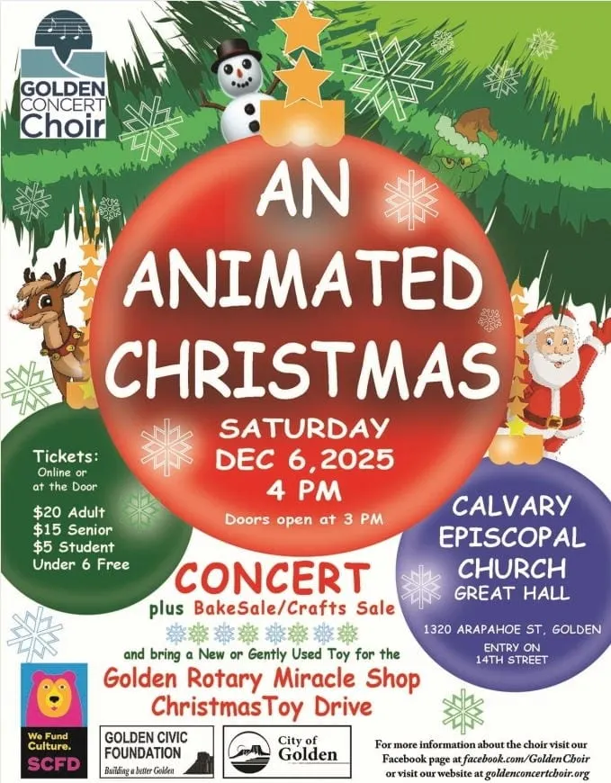 In the Great Hall of the beautiful and historic Calvary Episcopal Church of Golden, the Golden Concert Choir presents An Animated Christmas, a light-hearted choral romp inspired by beloved animated children's Christmas specials, such as The Grinch, Frosty, Rudolph, The Polar Express, The Snowman, and a Charlie Brown Christmas. You are so welcome to come enjoy with us. More information