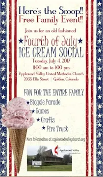 The Applewood Valley United Methodist Church will have a free ice cream social, open to all, tomorrow from 11AM to 1PM. They’ll have a bicycle parade, games, crafts, a fire truck and ice cream! The church is located at 2035 Ellis Street (map).