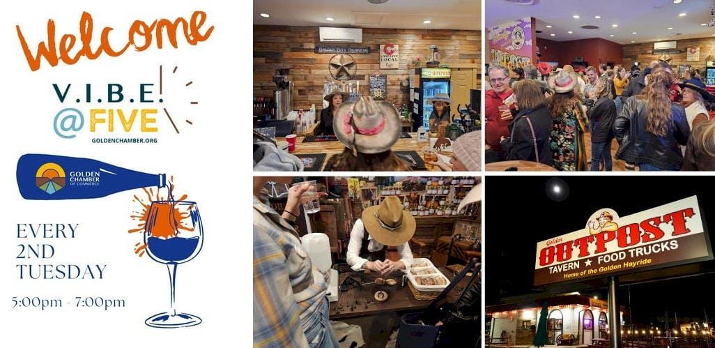 VIBE@FIVE is Golden's Happy Hour! Come join other members of the Golden Chamber of Commerce for this "Very Important Business Event" - VIBE!