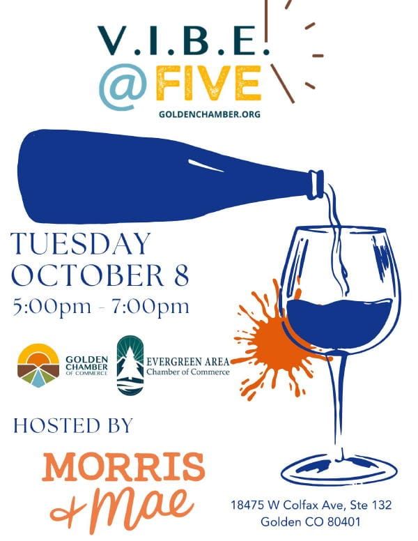 VIBE@FIVE is Golden's Happy Hour! Come join other members of the Golden Chamber of Commerce for this "Very Important Business Event" - VIBE!