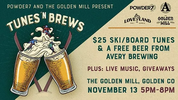 Kick off the Ski Season with Powder 7 and the Golden Mill. $25 ski/board tunes + a complimentary pour of Avery Brewing Co’s - Cold Front Lager. More information