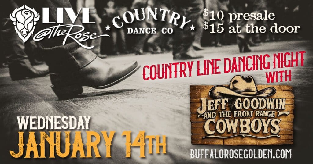 Kick Up Your Heels at the Buffalo Rose! Get ready to boot scoot and boogie at Golden's hottest country night! Join Jeff Goodwin and the Front Range Cowboys for an evening of toe-tapping tunes and line dancing that'll have you two-stepping till closing time. Buffalo Rose (main venue)