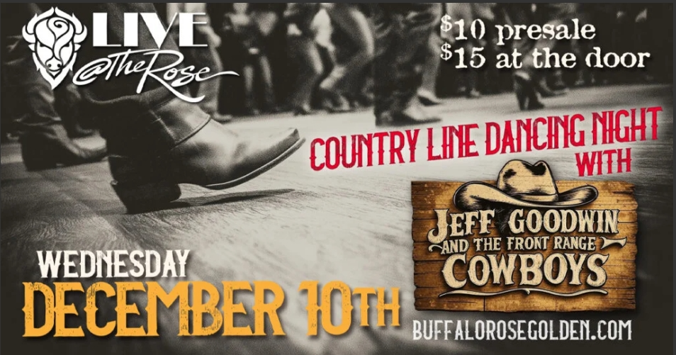 Kick Up Your Heels at the Buffalo Rose! Get ready to boot scoot and boogie at Golden's hottest country night! Join Jeff Goodwin and the Front Range Cowboys for an evening of toe-tapping tunes and line dancing that'll have you two-stepping till closing time. Buffalo Rose (main venue)