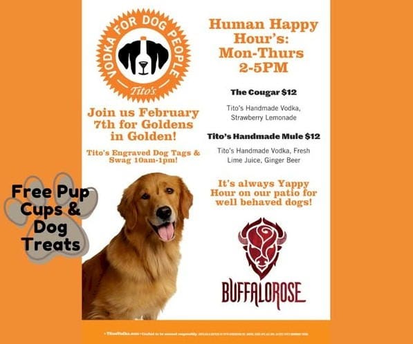 The Buffalo Rose (map) is opening early (9AM), serving breakfast burritos. They will have free pup cups, dog treat, and engraved dog tags, sponsored by Tito's Voldka.