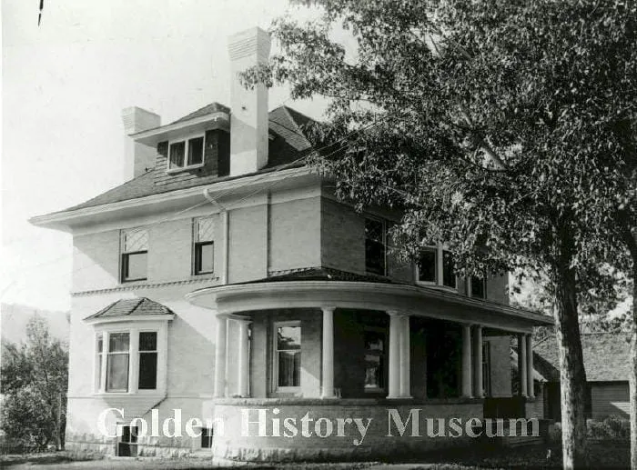The Globe says George Parfet’s elegant new house looms up “like a castle on Ford street.” We do not know as a castle on Ford street would loom up differently than one elsewhere in our beautiful city, but George is going to have a daisy of a house all the same, by far the best and most costly home so far erected in Golden. It is two stories high above a high basement, of buff pressed brick so extensively manufactured by the Golden Pressed Brick Company, and will be modern in every detail.