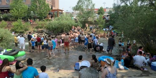 2012 was a startling year for Golden. Temperatures were exceptionally high, water flow was exceptionally low, and the Denver metro area suddenly discovered that Golden was a great place for wading, tubing, and picnicking. Hordes of people descended on Clear Creek, causing erosion of the banks, trail and road congestion, and parking problems. Residents were dismayed at suddenly becoming a regional attraction. The City responded by fencing off parts of the bank, posting rules of conduct, and hiring seasonal rangers to patrol the Creek.