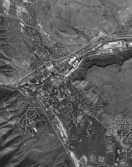 Bill Robie gave me this great aerial photo of Golden, taken in 1990. That was right before Golden’s economy (and property values) really took off. Mitchell Elementary was still downtown, the Visitors Center hadn’t yet been built, the Golden Hotel wasn’t there yet, and the Canyon Point neighborhood hadn’t been built. What other changes do you spot?