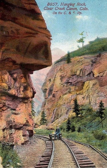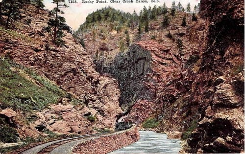 Early 1900 Clear Creek Canyon postcards were always of the railroad and the various passenger and freight trains that used the line. Construction west of Golden began in August, 1871, as the Colorado Central and the line was finally abandoned and dismantled as the Colorado & Southern in 1941.