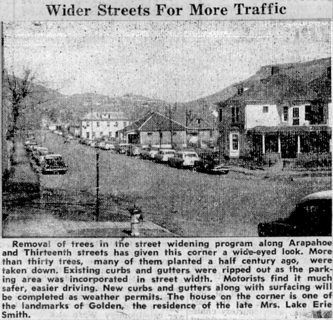 Lake Erie Smith came to Golden to visit an aunt in 1870, and returned the following year to marry W.G. Smith–son of the Presbyterian minister, editor of the Golden Globe, and former lieutenant governor of Colorado. The couple had 3 daughters and a son, and by the time she died in 1957 she also had 9 grandchildren and 3 great grandchildren.