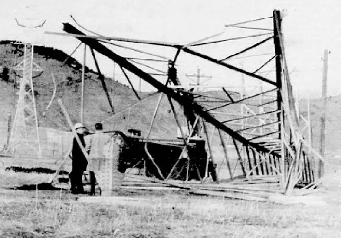 “Officials stated that the methods employed indicated that the person who set the charge had military training in demolition. The force of the blast was such that pieces of the tower were thrown for a great distance. One large piece was found embedded in a mobile home…more than 1-1/2 miles from the blast.”