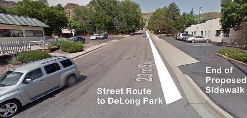 One of GURA’s goals is to make DeLong Park more accessible to residents west of the park. They had hoped to build a sidewalk along 24th Street and install stairs at the southwest corner of the park. That proved complicated, so their new plan is to install a sidewalk along Ford, between 24th and 23rd, along the side of the old Golden Motel. This would still leave people walking in the street for two blocks up 23rd Street, but that is a fairly low-traffic street, so they are unlikely to be run over.