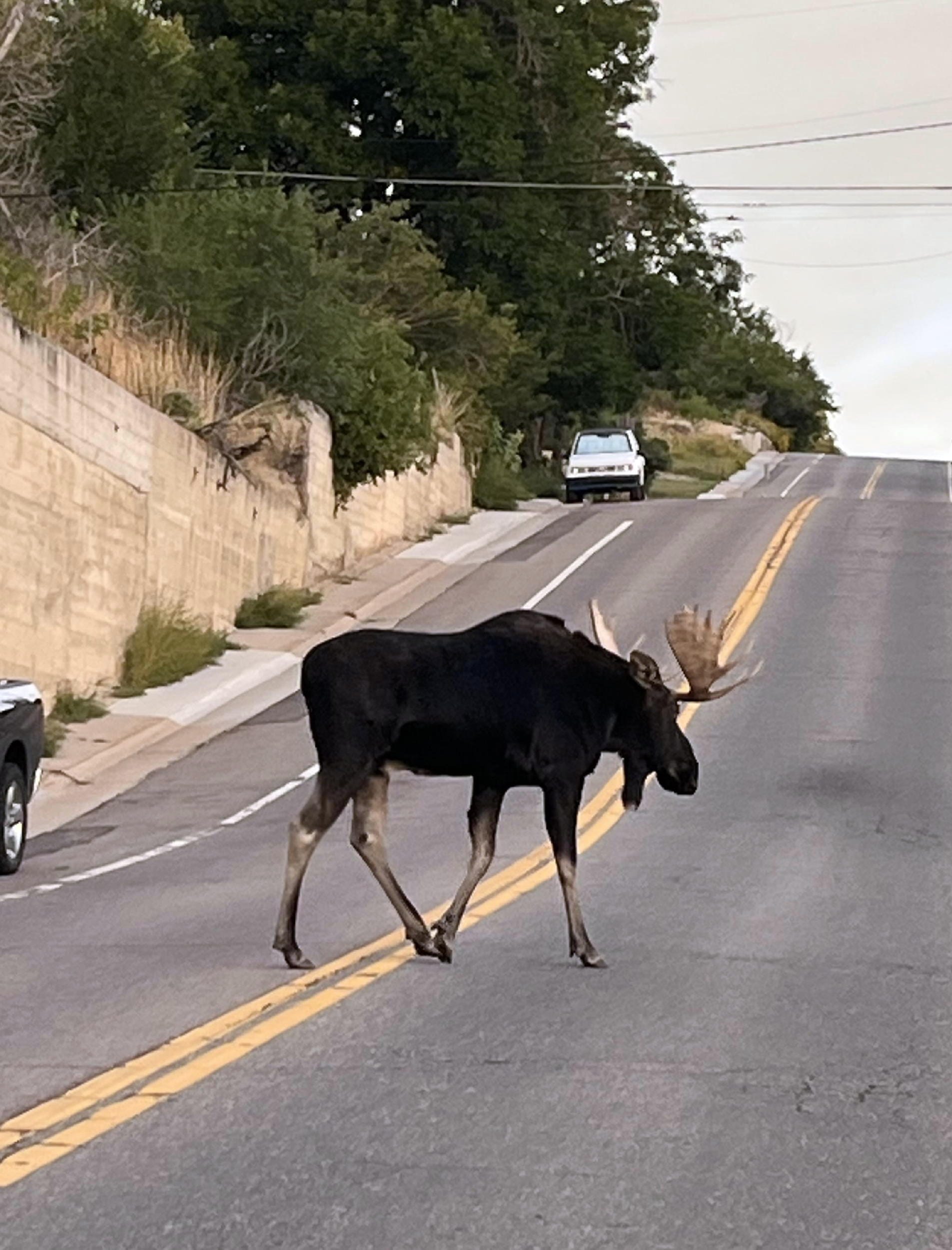 I love seeing the photos that people send me. I don’t usually post wildlife photos, because the best ones are usually close-ups, and my one rule is that the location has to be recognizably Golden; that’s why you see so many photos of Castle Rock. This stretch of Ford Street isn’t particularly eye candy-ish, but it was exciting to see a full-grown moose strolling through town. (Thanks, Terri!)