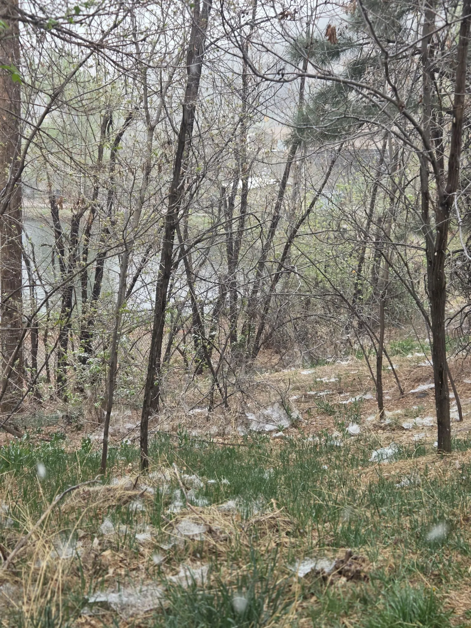 Last Friday, the spiders were enjoying an early spring along the path by the pond--a nice little neighborhood of webs spread around on the grass. Holly Thomas noticed them because a few early snowflakes settled on them, making them visible. As the snow continued, the webs collapsed. The arachnid community will rebuild.