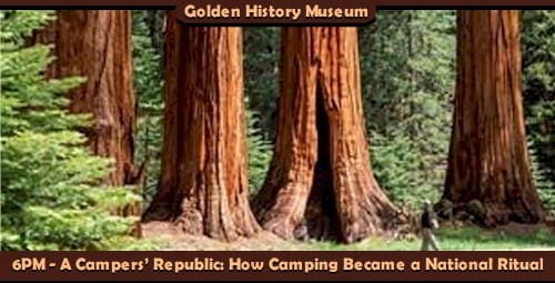 6PM The Golden History Museum has been offering a great lecture series this year–I’ve attended several, and I plan to go to this one: A Campers’ Republic: How Camping Became a National Ritual. At first glance, camping out seems like a simple proposition: a chance to get back to nature and get away from it all. A closer look at how this recreational habit got built into American culture and federal infrastructure reveals a more complex story of dying Sequoia trees, the Great Depression, and hopes for democracy. Get a ticket for the lecture.