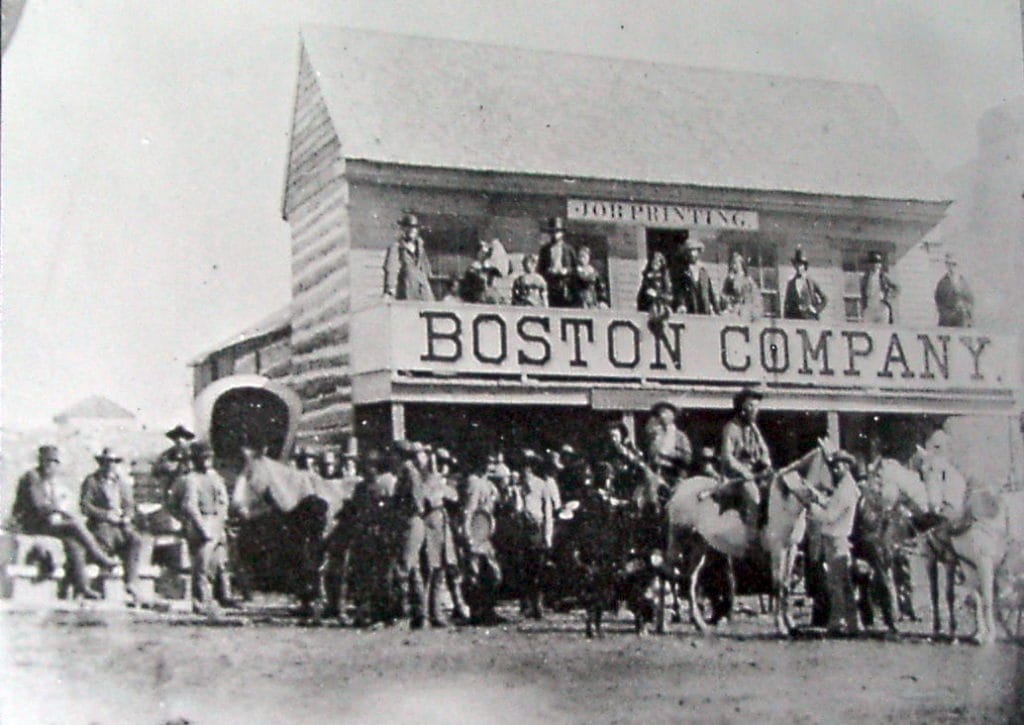 The log building was constructed in the summer of 1859. The Boston Company, led by George West, arrived with a wagon train of goods. As many gold-seekers were stopping at this point before making the final climb into the mountains, the Boston group decided this would be a good site for a town. They began constructing their building and hired a surveyor to lay out a town site.
