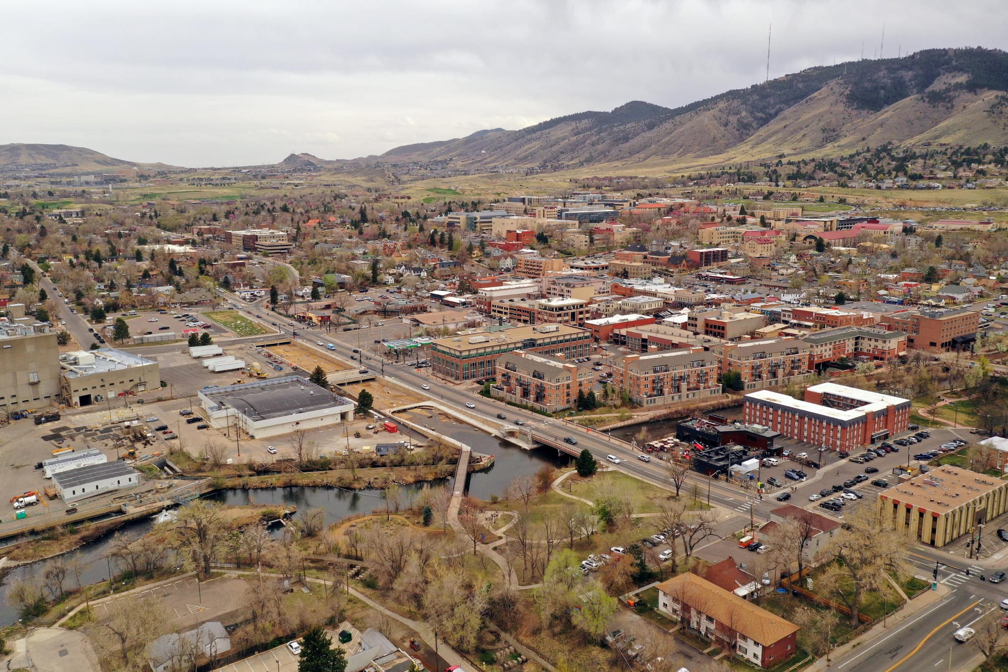 Today’s walk through “Heart of Golden” land focuses on the property occupied by City Hall. As shown in the 1903 photo above, Clear Creek was originally wider, with a considerable flood plain. Both sides of the Creek have been built up, making the Creek channel deeper and narrower.