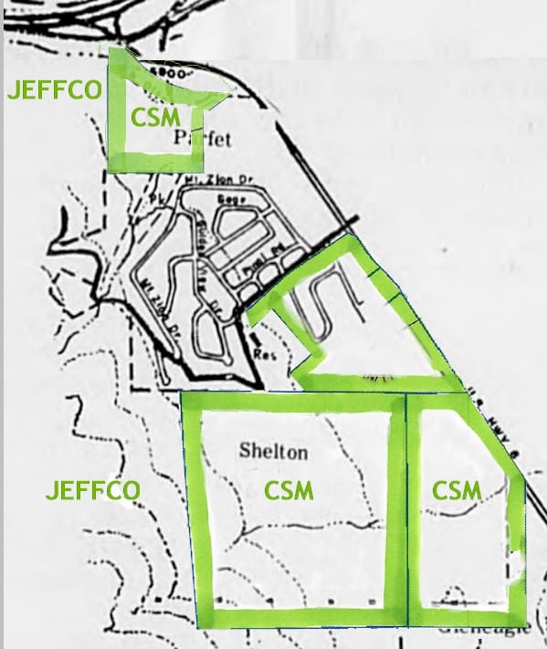 Ms. Kettering’s research shows that both the Parfet land on the north and the Shelton land on the south now below to the Colorado School of Mines. (Thanks, Esther!)