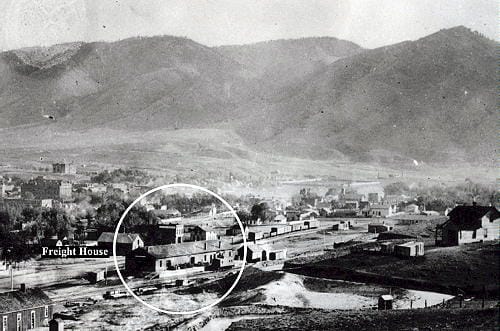 The freight house appears in many old photos and maps, including the 1882 Birdseye View Map of Golden: