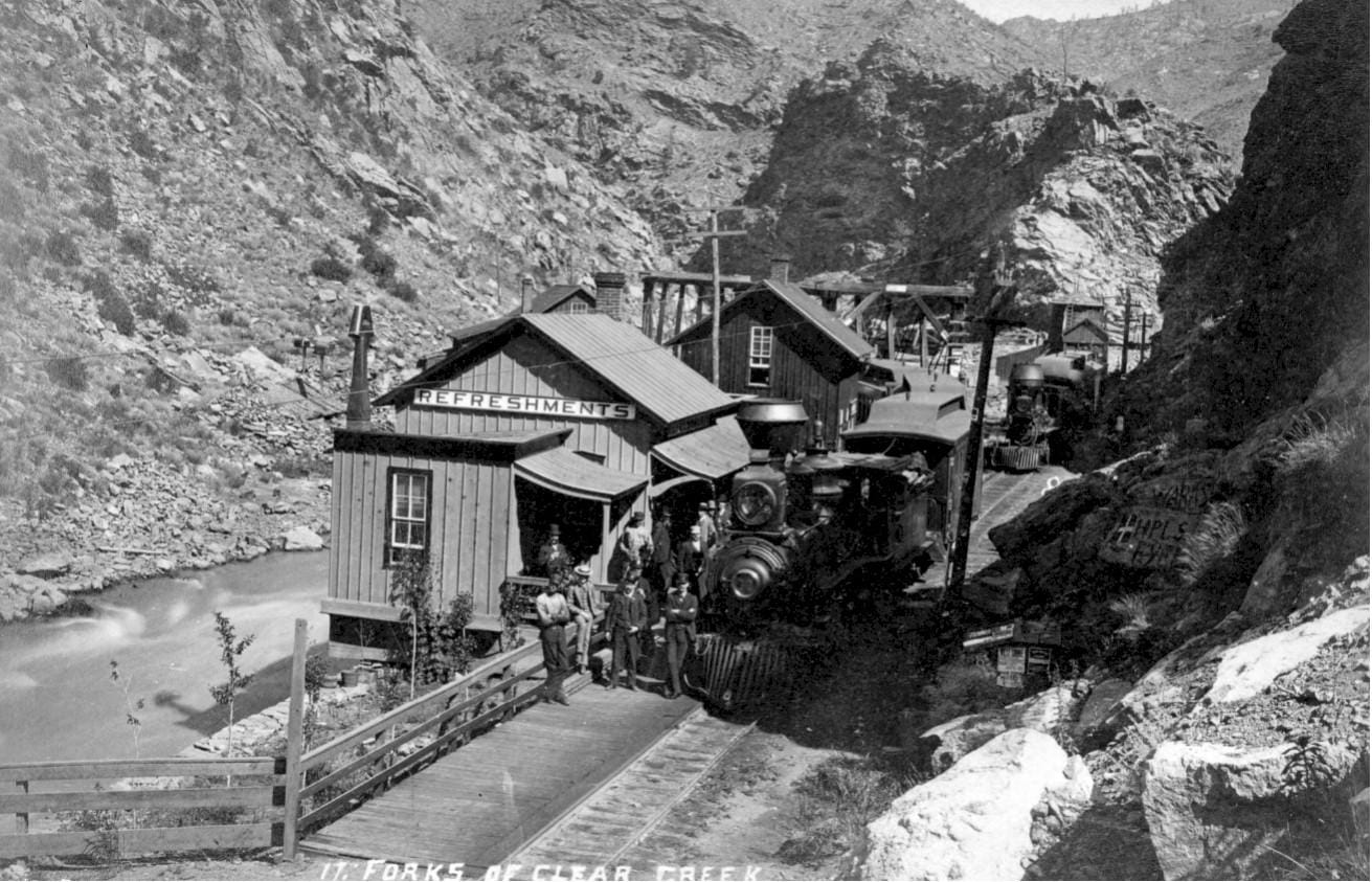 Forks Creek was the station where trains coming up the canyon were split, so some of the cars headed north toward Central City and others headed south to Idaho Springs. The article begins by saying,