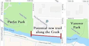 The Parks, Recreation & Museums Advisory Board will meet at 7PM this evening at the Golden Community Center. The City is interested in creating a walkway on the north side of Clear Creek, between Parfet Park and Ford Street. The new Golden Mill owners favor this plan. The City would also need an easement from the new owner of the Gold Apartment building. Steve Glueck, Director of Community & Economic Development, will attend tonight’s meeting to see what the Parks Board thinks of this idea. The Board will also discuss the Lubahn Trail, which starts at Belvedere Drive and 19th Street. The trail needs maintenance, and the City may work with Jeffco Open Space to repair it. See the meeting packet to learn more….