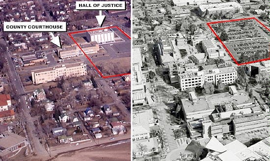 The Hall of Justice opened in 1966 and was demolished in 1993. The School of Mines has been using that land as a parking lot for the past 19 years, but they have big plans to develop it–in fact construction has already begun.