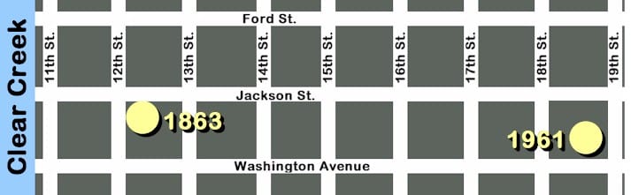 This photo shows the 1863 First Baptist Church of Golden, which used to stand at 12th & Jackson (now occupied by Tributary Food Hall). This was one of several 19th century churches in downtown Golden that were outgrown by their congregations in the years after World War II. Golden’s population had grown from 3,175 in 1940 to 7,118 in 1960, and church congregations grew apace.