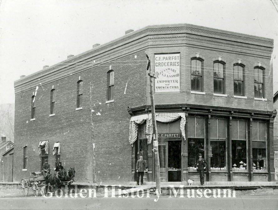 In the late 19th century, stores began to specialize more. Golden was the trading center for a large area of farms and ranches, so it supported several stores that sold groceries exclusively. Many of the stores along Washington Avenue were used as groceries at one time or another.