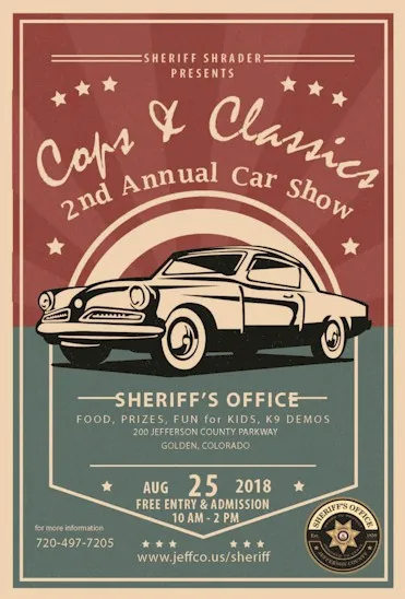 The Jeffco Sheriff’s Department is hosting the 2nd annual Cops and Classics Car Show tomorrow from 10AM-2PM, at 200 Jefferson County Parkway (map).