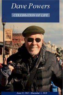 People have been asking about Dave Powers’ Celebration of Life. All of Dave’s friends, acquaintances, and admirers are invited to a commemoration in the auditorium, in the Mountaineering center (map) from 5-6PM this Thursday, January 9th. Dave’s son Brian and several friends will share their fond memories. After this, the family will host a reception from 7-9PM at the Golden Hotel. Dave’s band mates in the Clear Creek Jazz Quartet will provide live jazz and food and drink will be on hand.