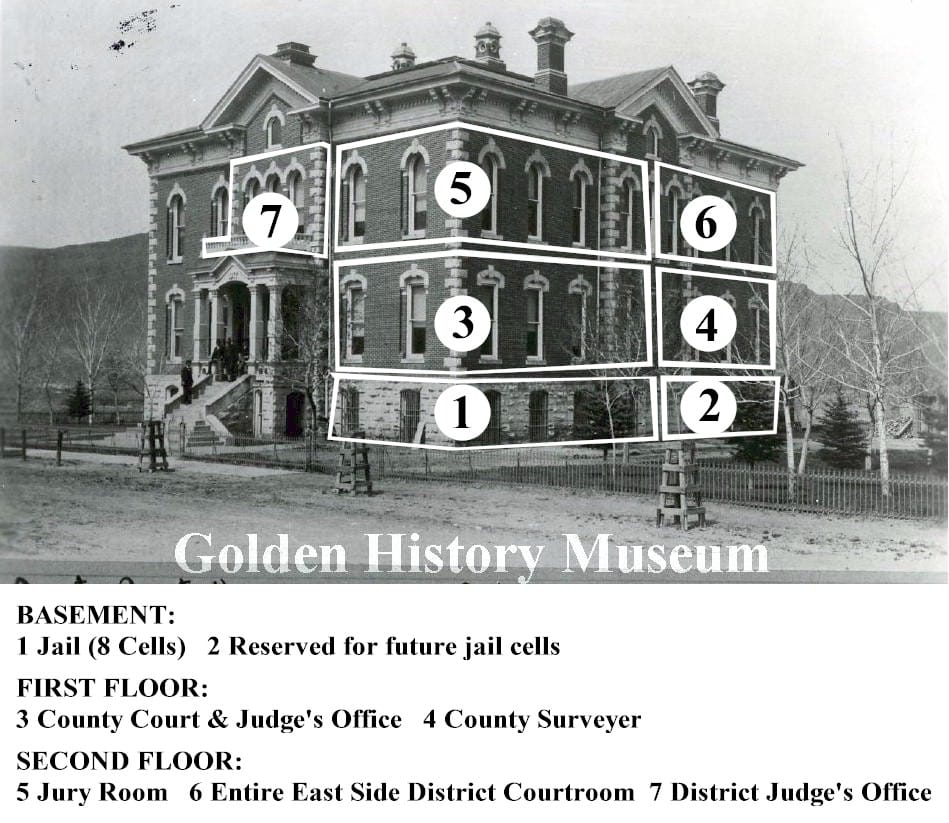 The May 31, 1882 Colorado Transcript described an attempted jail break from the 4 year old county courthouse. The article began by praising the security of the structure, and bragged that Larimer county sent their toughest prisoners to Jefferson County’s jail in Golden. It then went on to describe a near-miss the previous week.