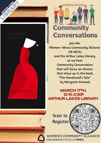 Join the Women—Mines Community Alliance (W-MCA) and the Arthur Lakes Library as we host a Community Conversation that will focus on several themes that show up in the book, The Handmaid’s Tale by Margaret Atwood, and the Hulu streaming series by the same name.