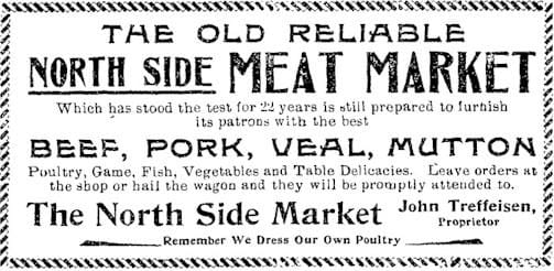 The March 17, 1910 Colorado Transcript included a guest column by John Treffeisen, long time proprietor of the North Side Meat Market, encouraging his fellow northsiders to install sewer lines north of the Creek.