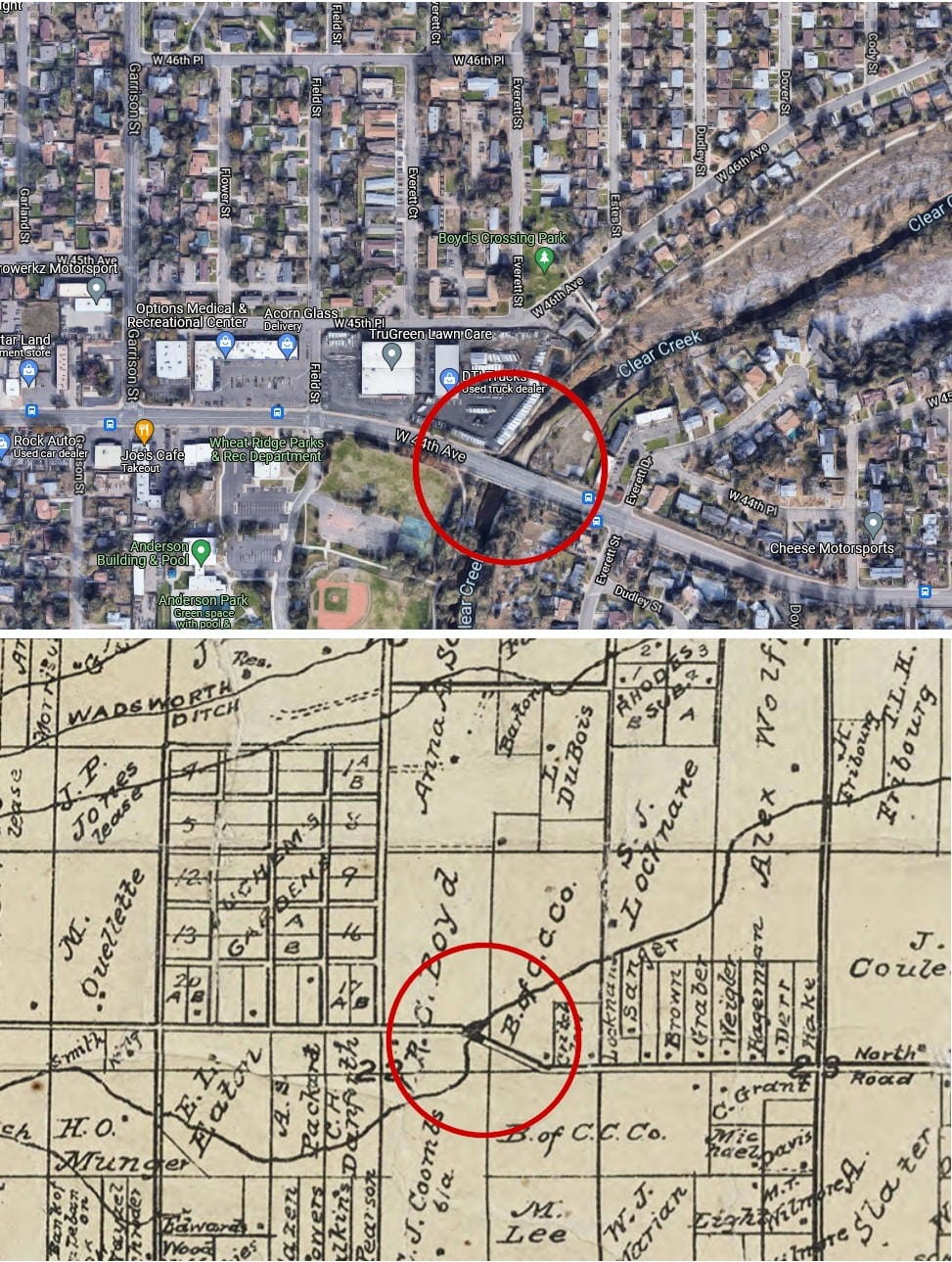 The October 12, 1922 Colorado Transcript included the obituary for Jim Boyd. Boyd arrived with his family as part of the 1859 gold rush. He was 19 at the time. After helping his father build a house on the current site of the Golden Hotel, young James struck out to locate suitable land for a farm. He chose a prime location, halfway between Golden and Denver. Since he was not yet 21, he got his father to lay claim to the land. His father, in turn, deeded the land to him.
