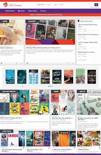 Have you seen the library’s new website? It’s great! If you’re looking for something new to read, or a movie to watch, you’ll find all sorts of recommendations on the home page. Right now they’re featuring the Best Fiction of 2017, Best Non-Fiction of 2017, a bunch of good Apocalyptic and Post-Apocalyptic movies, highly-recommended science fiction novels, books on relaxation, books on healthy eating, good Young Adult series, snow-themed movies for kids, winter-themed movies for families, and cold weather-themed movies for adults!