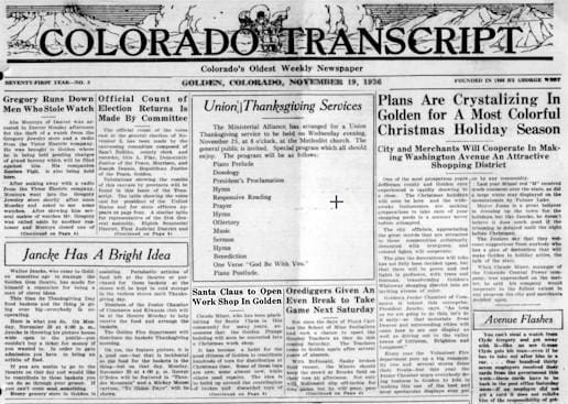 Thanks to the Golden History Museum for providing the online cache of historic Transcripts, and to the Golden Transcript for documenting our history since 1866!