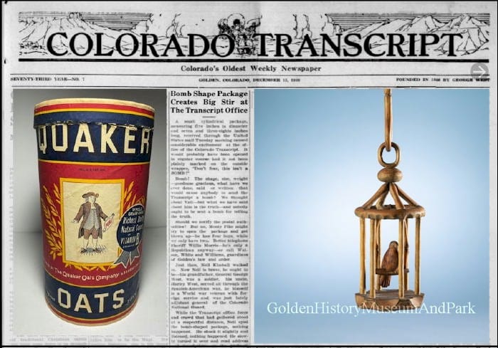 The December 15, 1938 Colorado Transcript featured an article titled “Bomb Shape Package Creates Big Stir at The Transcript Office.”