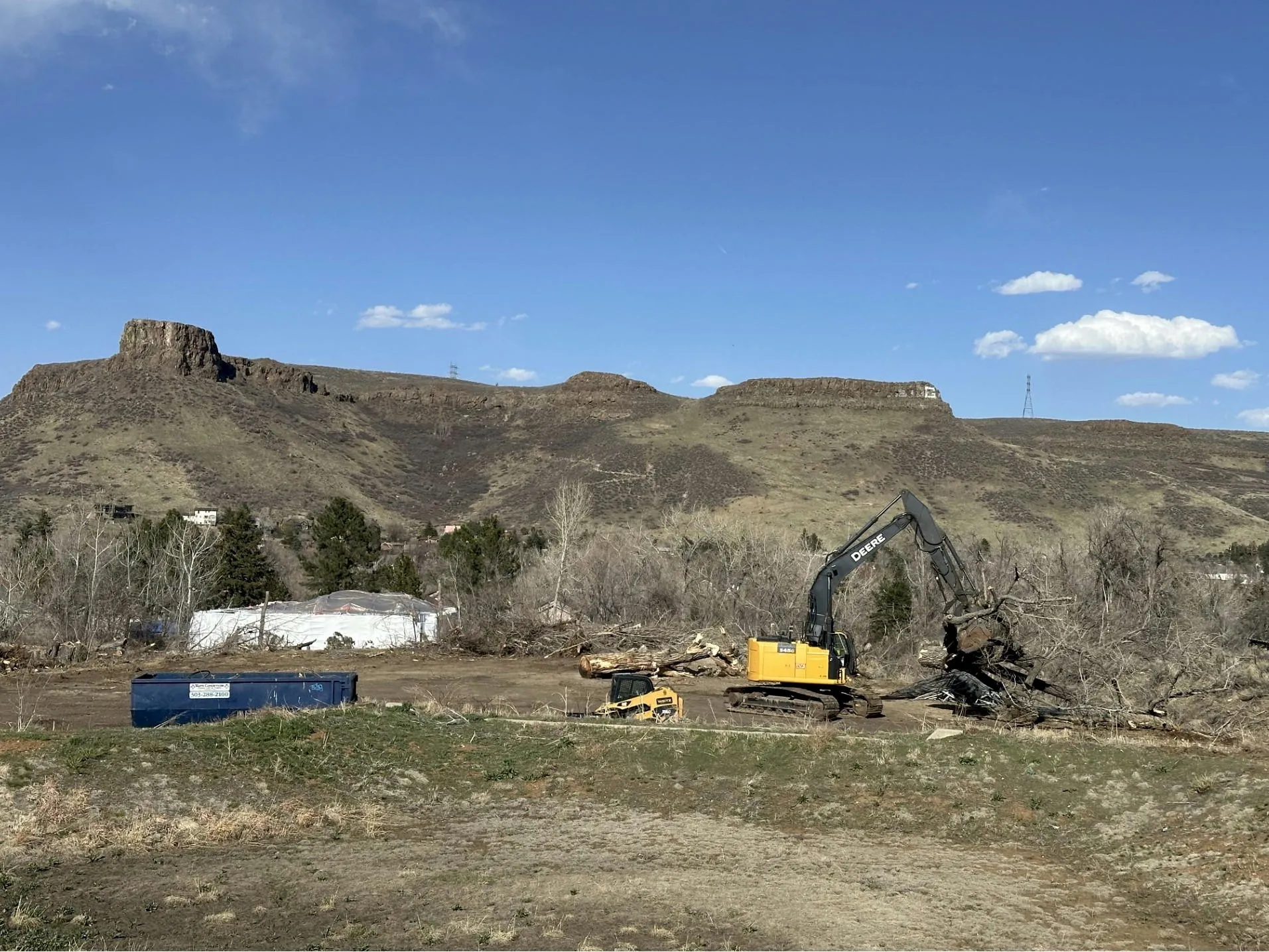 Work has begun on clearing the site for the new 800 bed Mines dormitory. Crews are removing the trees along the Welch Ditch.