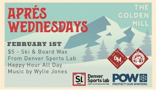 Sponsored by New Belgium Brewing, join us every Wednesday from 5-8 for live music, giveaways, happy hour drink specials, and MORE. Show us your lift ticket or season pass any time on Wednesday and get a FREE Fat Tire Pint. For every pint of Fat Tire that’s sold, The Golden Mill will donate $1 to Protect Our Winters. On February 1st from 5-8 PM we will be having music from Wylie “Crazy Horse” Jones and Ski/board waxes from Denver Sports Lab