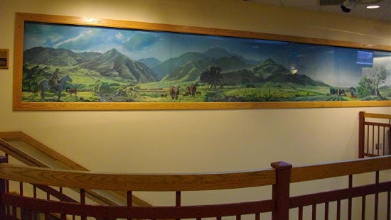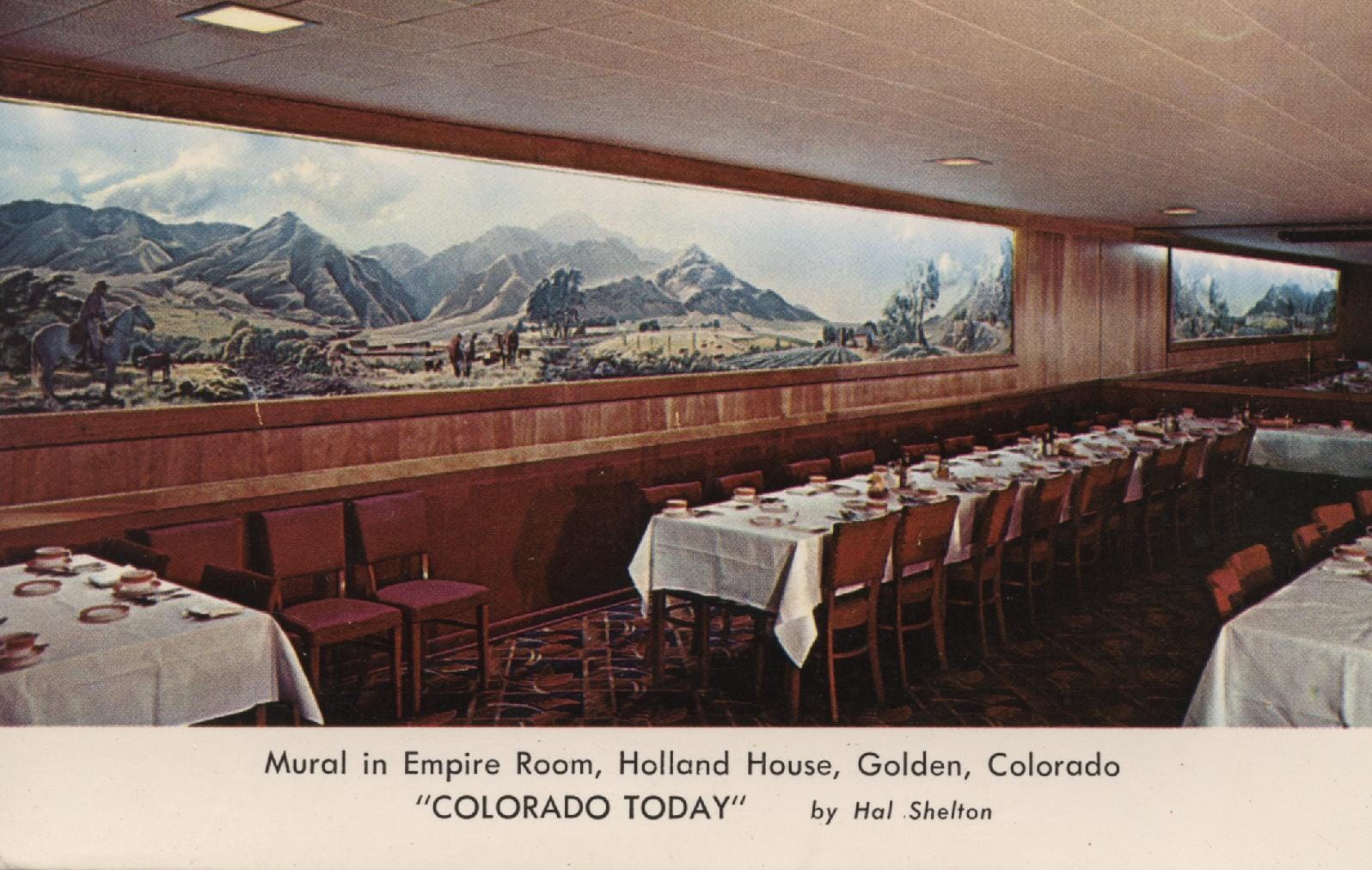 Whenever I visit the 2nd floor of the Community Center, I pause to admire this mural by Hal Shelton. It was originally painted to hang in the Empire Room at the Holland House Hotel (now the Table Mountain Inn).