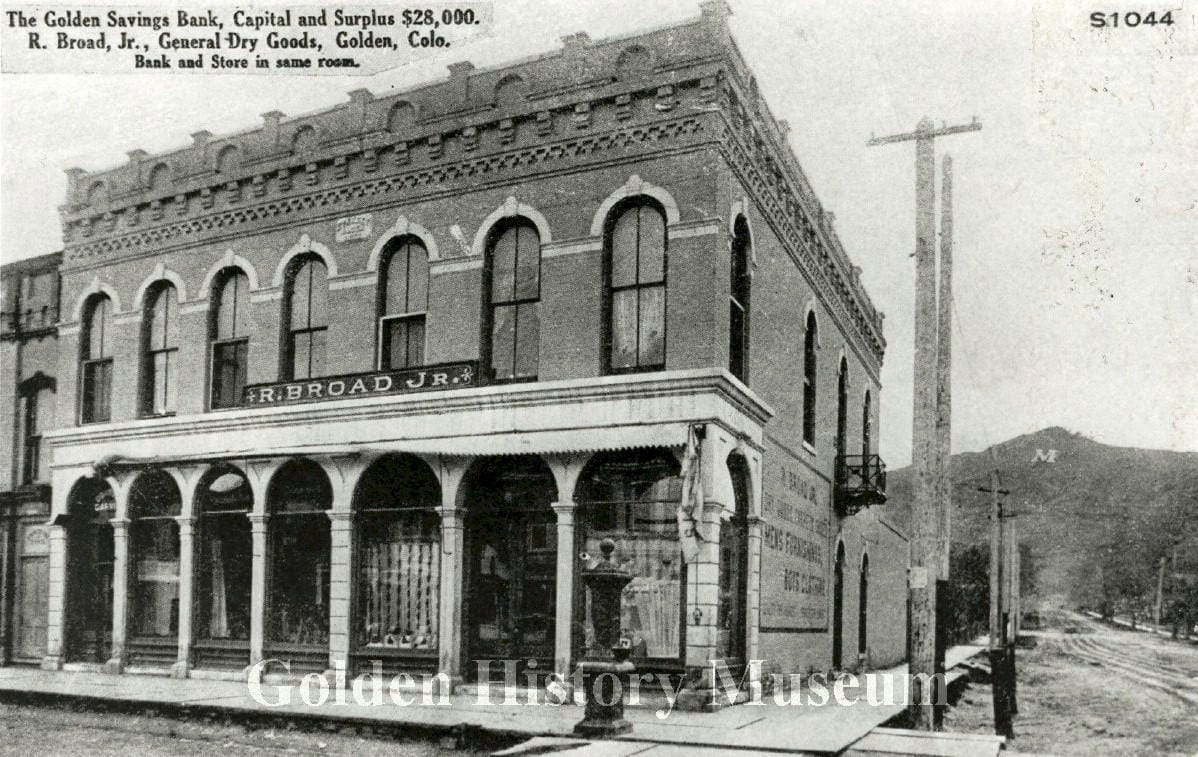Mr. Broad owned a dry goods store at 12th and Washington from the 1890s into the 1930s. He grew up on a ranch north of Golden. The family was very poor and Broad had little formal schooling, but he was well read–so much so that he began his career as a school teacher. He embarked on business in Golden and within a few years, owned one of the more prosperous stores in town.