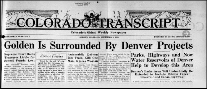 Thanks to the Golden History Museum for providing the online cache of historic Transcripts, and to the Golden Transcript for documenting our history since 1866!