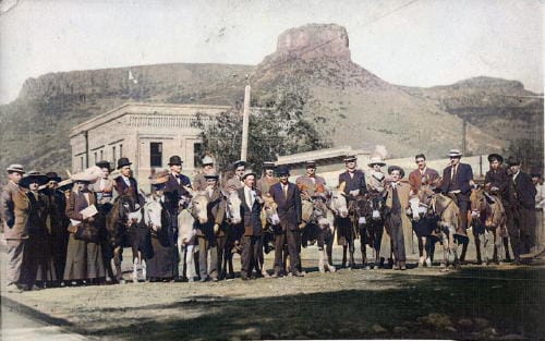 One of Golden’s earliest tourist-centric businesses offered burro rides to the top of Castle Rock. The business owner, Charles Quaintance, also operated a photography studio at 13th and Washington. He took photographs of every group as they began their ride to Castle Rock and developed the photos while they were gone. When they returned, he showed them the photos and offered them for sale. (This was a precursor to the sales tactic we still see at places like Disneyworld.)