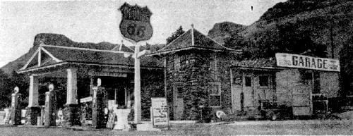 The Oasis Service Station was built at 2321 East Street in the early 1920s. The builder used native stone, gathered from the Golden area. At that time, East Street was the main route from Denver to Golden. It was owned by Al Thuet, a Golden native. Mr. Thuet planted several varieties of evergreens around the property and had beautiful flower planters every summer.
